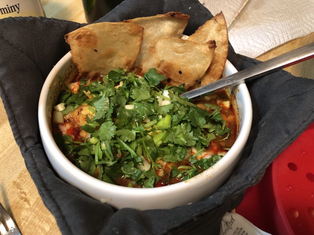 - Plate folded and add some chopped onion and cilantro. Serve with a cup of the sauce from the cooked meat for dipping.